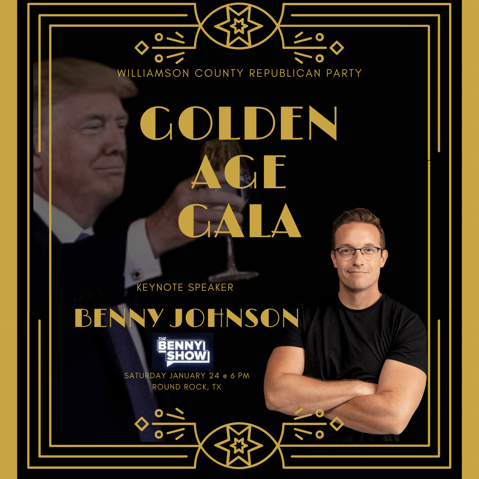Celebrate with the Williamson County Republican Party as we usher in a new Golden Age of American exceptionalism with Keynote Speaker Benny Johnson!
