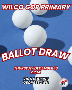 December 18, 2025 2:00 pm - 4:00 pm 716 S Rock St 716 S Rock St, Georgetown, 78626 + Google Map chairman@wilcogop.org